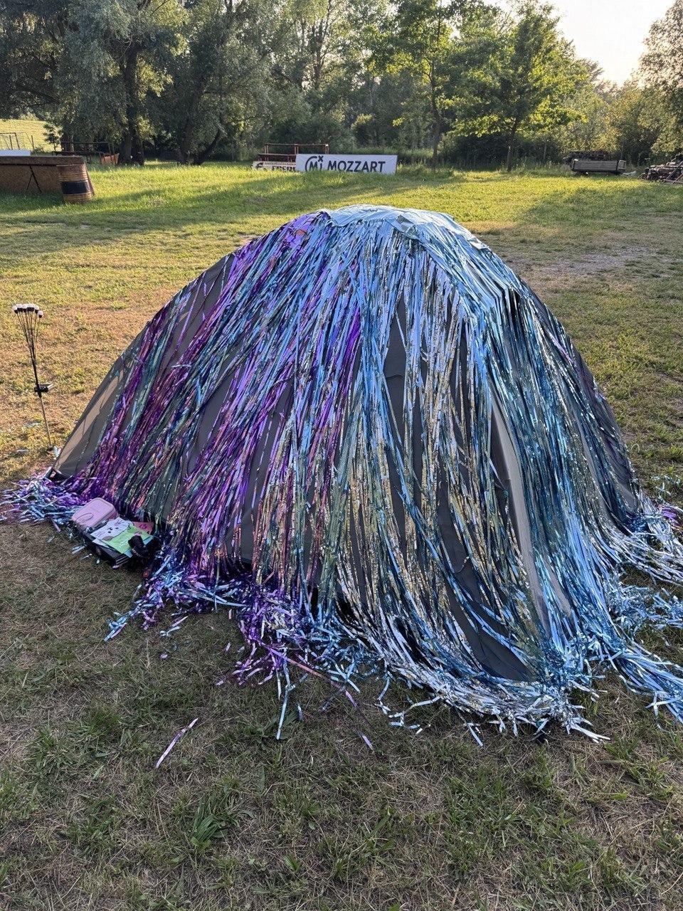 Мы выбрали формат Кэмпа, где люди ночуют в лесу в палатках, а тусят все вместе на огромной территории, ведь это весело. У нас есть озеро, баня, речка рядом, и куча организованных самими клубнями активностей — от лекций по ИИ, до заплыва на надувных женщинах. От уютных посиделок у костра под гитару на природе, до рейвов и караоке ночью.