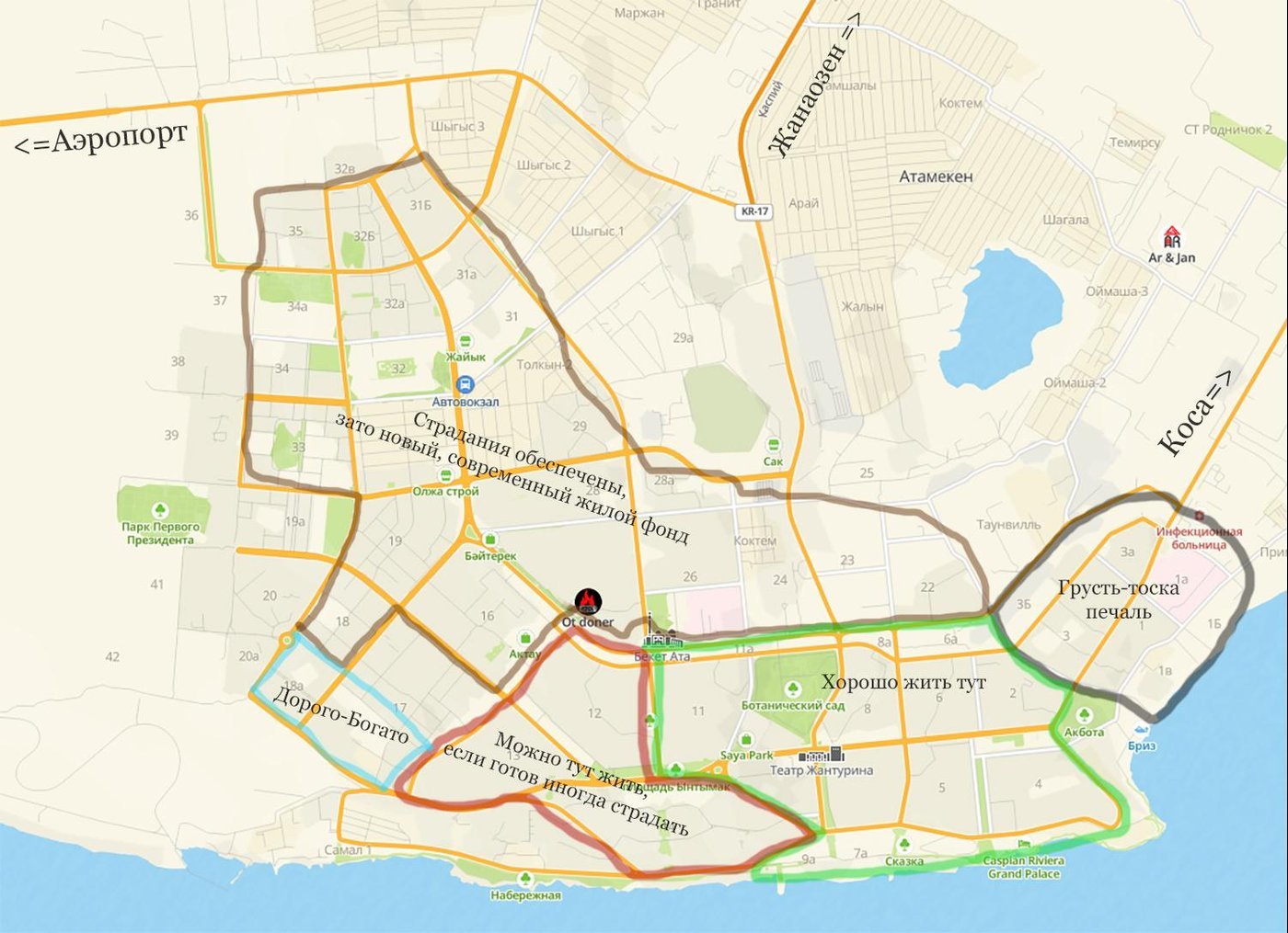 от души! В 2002 году отец с товарищами держал казино в Актау, ну и меня на лето привезли. Не знаю почему, но я запомнил как местные хвастались - "У нас на переходах - пешеходов пропускают, машины останавливаются", для меня Шымкентского тогда это был шок, потому что реально пропускали. Тогда и сейчас когда бываю в Шымкенте, так же как в Тбилиси, на пешеходе смотрю в обе стороны, вверх и назад на всякий случай.