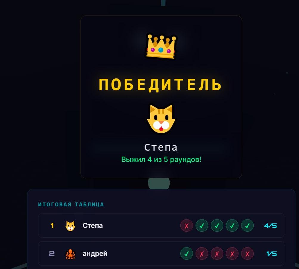 спустя два раунда проигранных 1/5 и 0/5, выжил в третьем. Игра топ, поугарали с другом