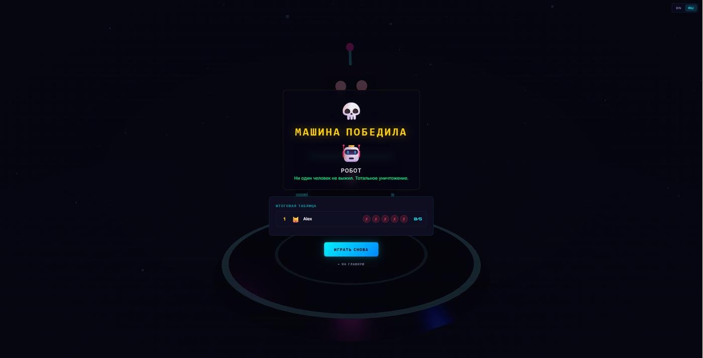 смог выжить только в 1 раунде из 5, видимо в мире ИИ постапокалипсиса у меня мало шансов(