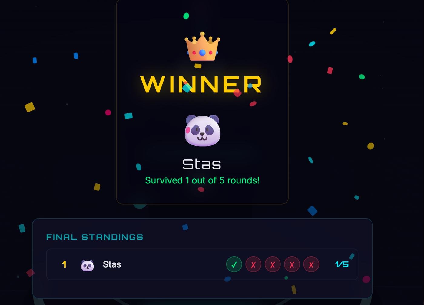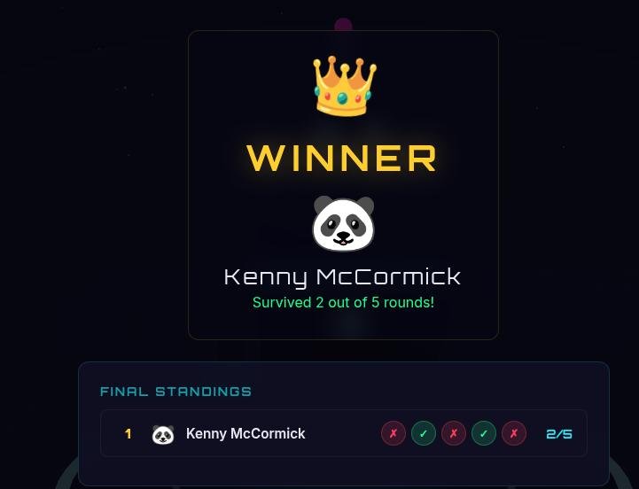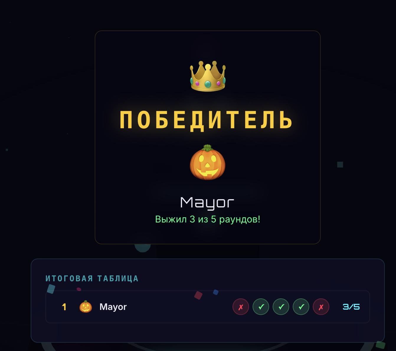спустя два раунда проигранных 1/5 и 0/5, выжил в третьем. Игра топ, поугарали с другом