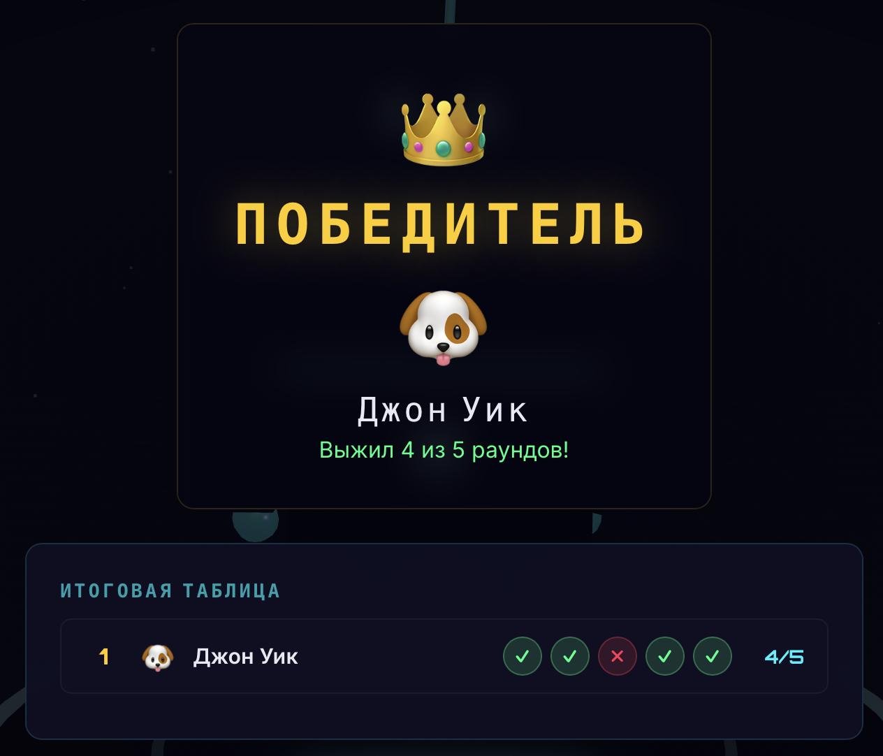 смог выжить только в 1 раунде из 5, видимо в мире ИИ постапокалипсиса у меня мало шансов(