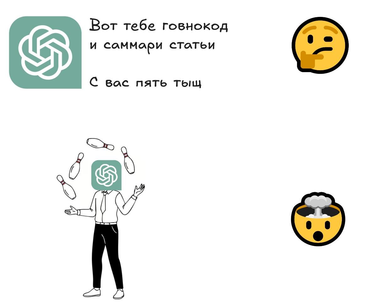 И так со всем. Нужно оценить качество работы ЛЛМки, а людей мало? Окей, берем другую ЛЛМку, она рассудит. Нужно, чтобы модель не посылала клиента? Берём отдельную модельку. Анонимизировать входные данные? Кого вы обманываете, никто этим не занимается Есть решения и тут. Современная продакшен-работа с LLM - это натурально тот самый low-code/no-code конструктор из разных запчастей, зачастую других LLM и прочих моделей. И в этом проклятом мире нам с вами жить.