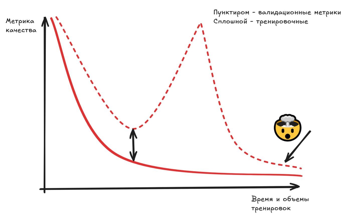 Первая причина - double descent. Один из важных концептов в машинном обучении - переобучение и обобщающая способность. В чём суть - если модель дохера умная, то вне зависимости от количества данных мы можем натренировать её так, что мы идеально всё предскажем, если это касается чего-угодно близко похожего на то, на чём тренировали. Проблема начинается там, когда мы пытаемся такой же моделькой предсказать нечто новое. Вот например если б было море пива, мы знаем, что мы бы были дельфином красивым. А если было бы море водки - то были подводной лодкой. Что же будет при море самогона?