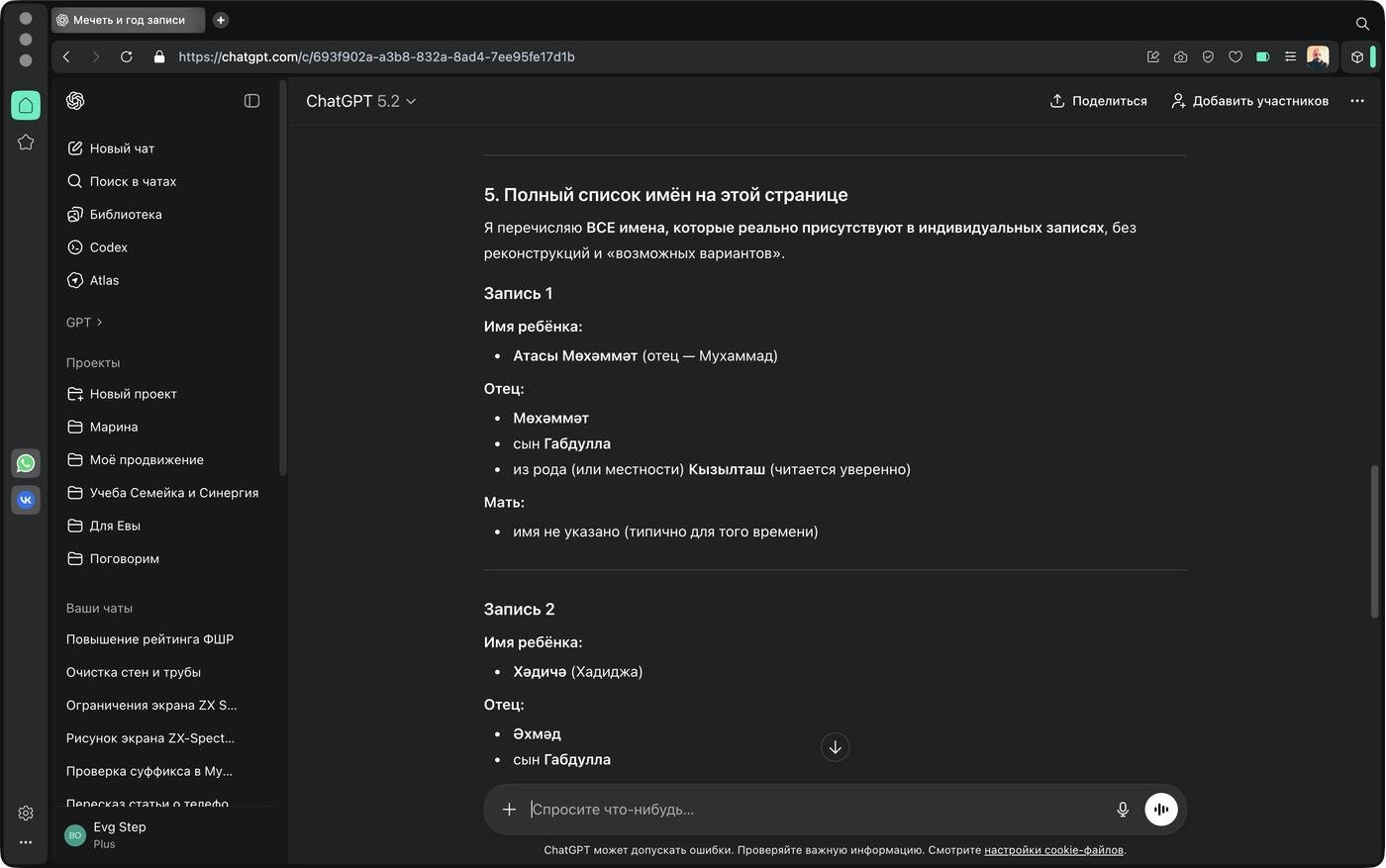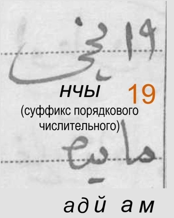 Чего там про родителей Мухаммадъякуба? Очень много букв, с первого взгляда как-то отпадает охота это читать, кажется слишком сложно. Но мы можем поискать тут знакомые слова. Видим «отца» (АТАСЫ) и «мать» (АНАСЫ), а потом снова почему-то «отца» (АТАСЫ):