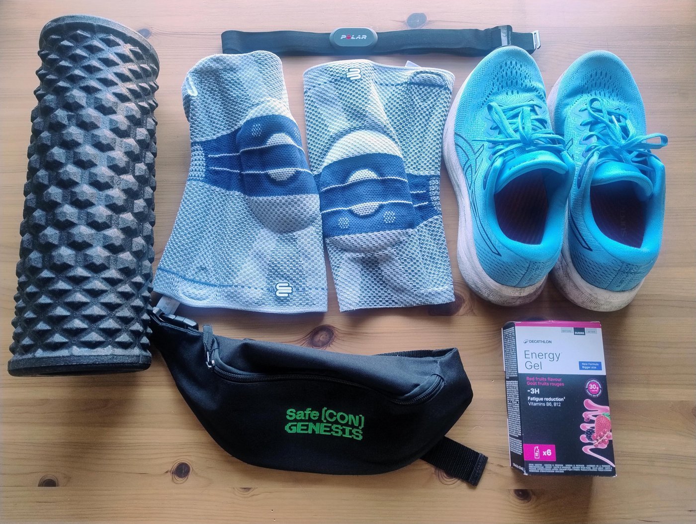 Также купил массажный валик из Декатлона расслаблять мышцы после тренировок, а также несколько упаковок спортивных гелей (на пробежках длиннее полумарафона нужно подпитываться на ходу).