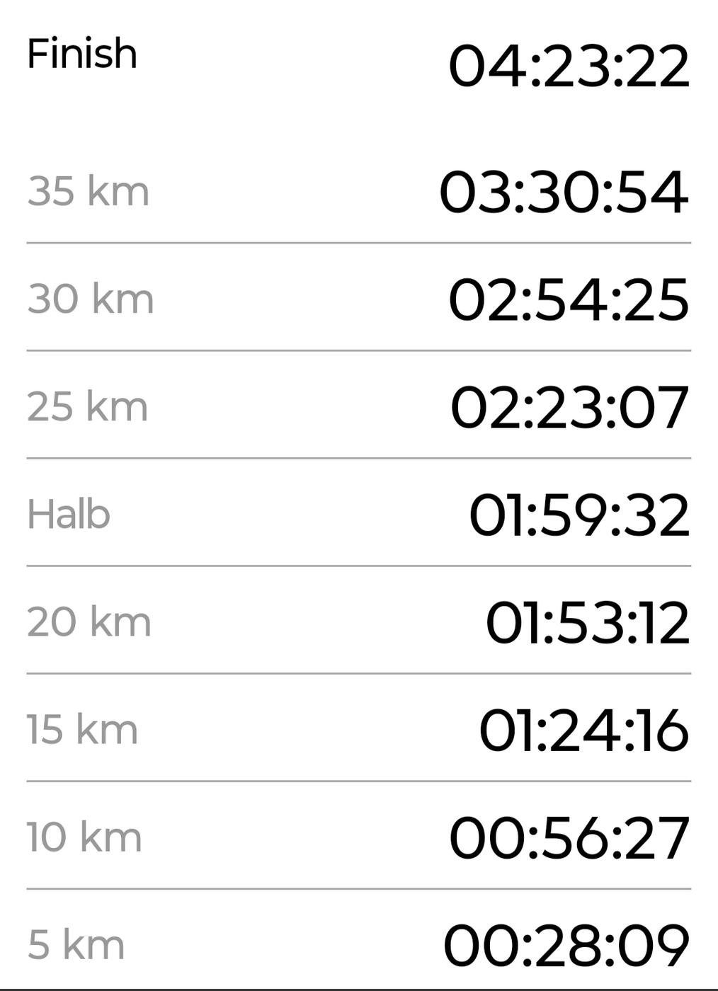 На второй полумарафон, в Берлине, я замахнулся на 1 час 40 минут. Но в середине тренировочного плана понял, что переоценил свои силы. На длинных пробежках просто не мог выдерживать нужный темп. Скорректировал цель до 1 часа 45 минут. В итоге пробежал за 1 час 45 минут с секундами.