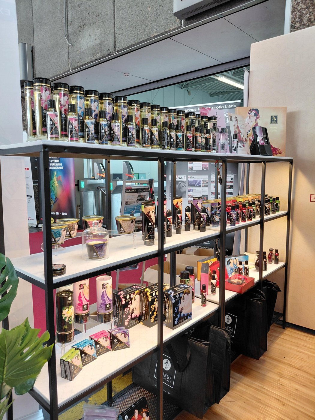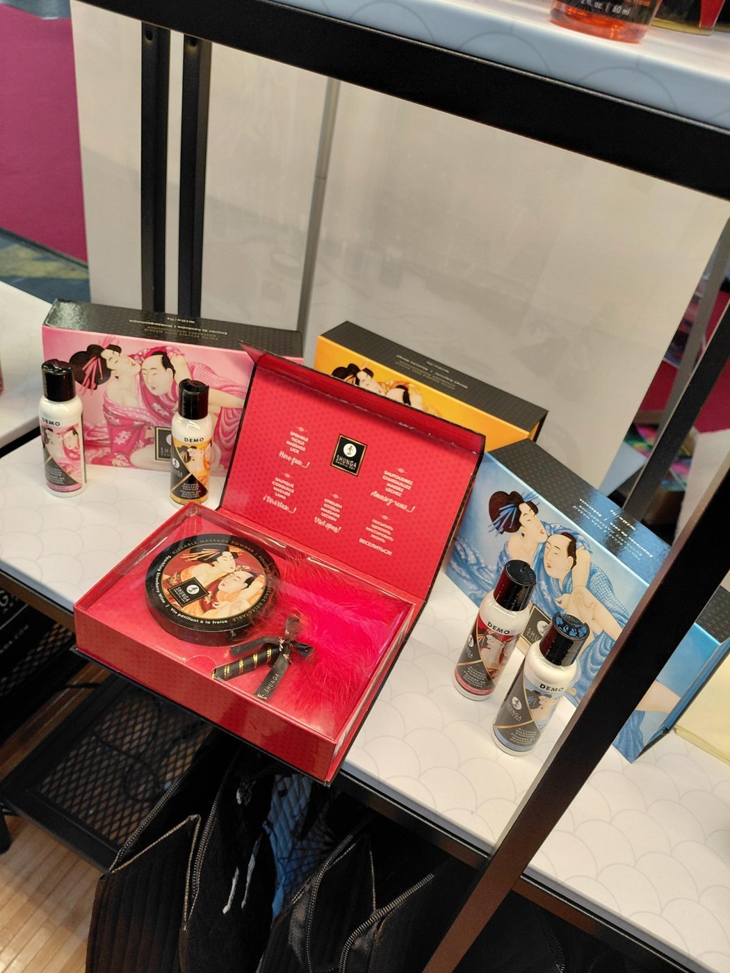Зато сразу у входа был стенд Shunga, одного из лучших брендов, делающих интимную косметику, возбуждающие средства, массажные штуки.