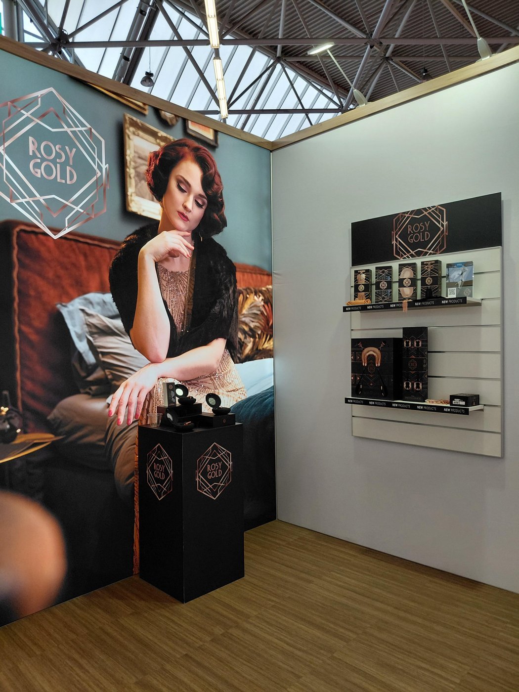 Уголок бренда Rosy Gold, они потом сделали небольшую презентацию с участием артистики бурлеска. Я прямо загорелась брендом и начала писать коллеге, что нам нужно это срочно! Собственно так выставки и работают