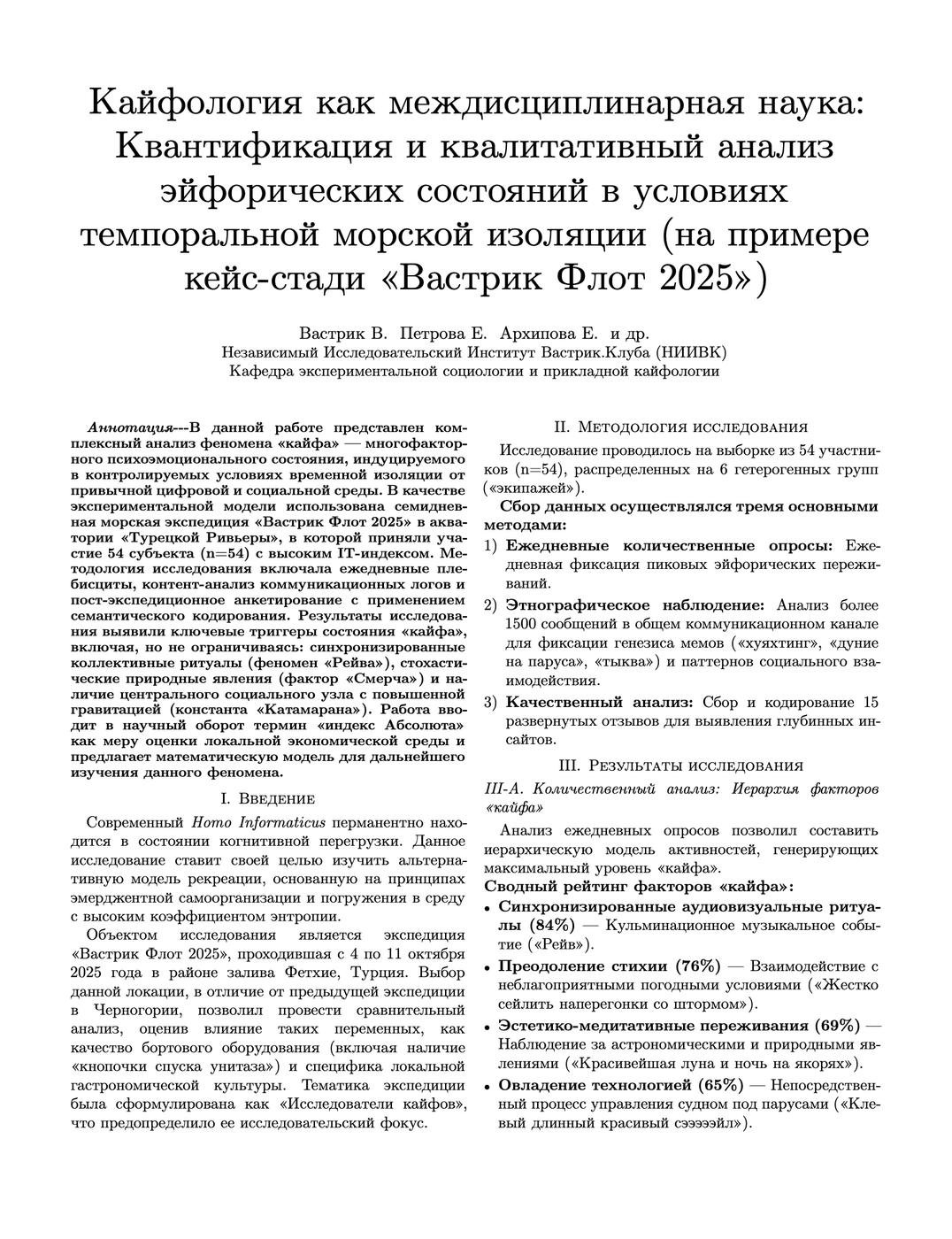 🔬 Мы не только лишь хуятили, чиллили, тусовались, рейвились и человечились — мы ИССЛЕДОВАЛИ КАЙФЫ! И вот, наконец, кафедра прикладной кайфологии НИИВК опубликовала научный труд (pdf тут) по результатам нашей экспедиции, чтобы потомки смогли кайфовать еще больше!