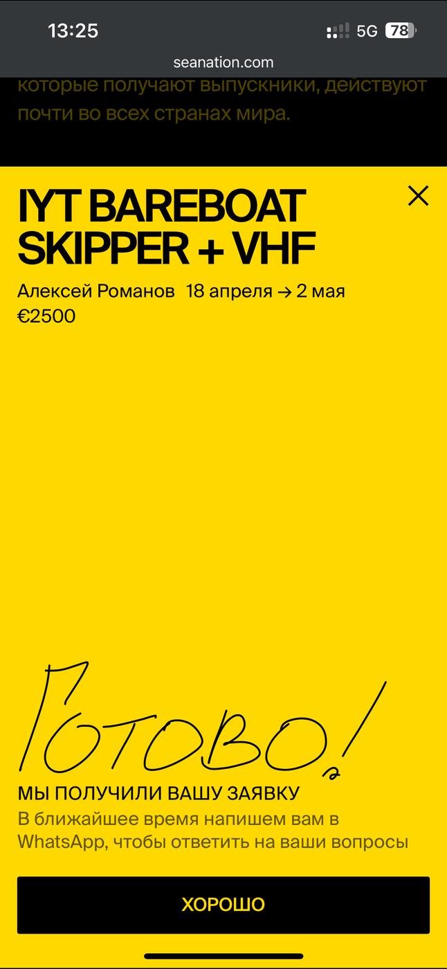 А последнее это устный экзамен, где задавали разные вопросы по домашнему заданию и просто из учебного материала, а также дали пару задачек, где нужно было сказать, какой яхте требуется уступить путь, а какой невозмутимо продолжать движение