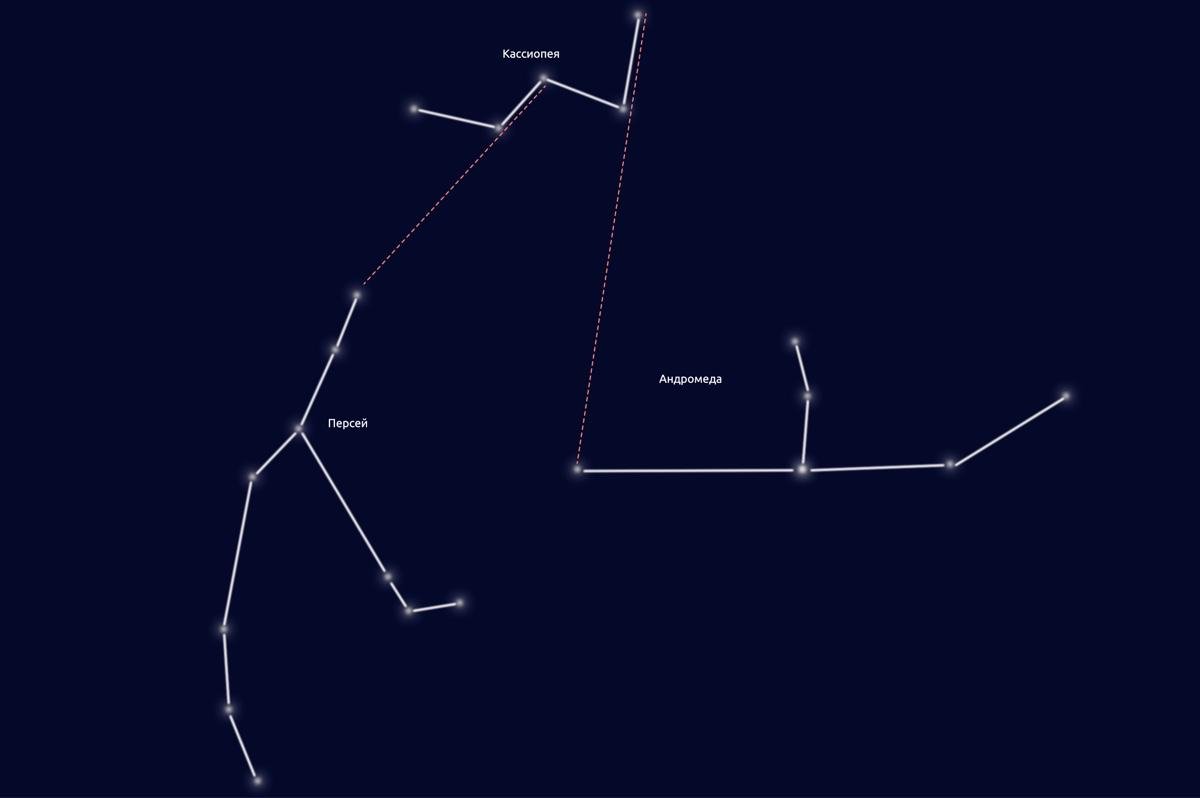 Как найти? — либо посмотреть от Ориона “вверх" — в сторону Кассиопеи, либо от Кассиопеи — в сторону Персея и ниже. Как ориентир — скопление звезд, похожее на маленький “ковшик” (о нем ниже).