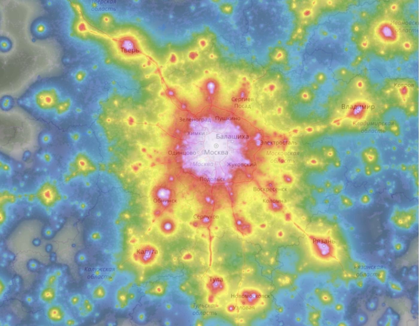 - Свет — ваш враг. Никаких прямых источников света, фонарей, машин и прочего. Если нет выбора, становитесь спиной к источникам света и не смотрите на них. Заодно так будете выглядеть профессионально (и сможете поговорить про всякие колбочки в глазу). Если вдруг можете выбирать, где гулять, смотрите lightpollutionmap.info — там инфо по засветке неба.