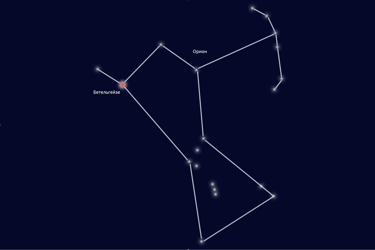 Чем важно? — Во-первых, оно красивое. Во-вторых, в нем красная звезда Бетельгейзе — и это повод пофлексить знанием о том, как ученые думали, что она вот-вот взорвется (но все еще нет). В-третьих, тут туманность Ориона, которую тоже можно видеть невооруженным взглядом.