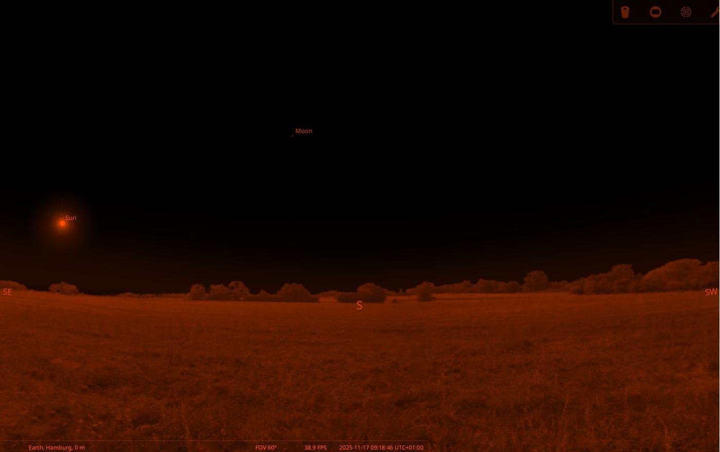- Глаза привыкают к темноте около 20 минут. После этого вы увидете и галактику Андромеда, и прочие клевые штуки. А вот если вы вылезли только что из чатиков — фигвам. Единственный способ избежать этого — использовать красный свет, который не нарушает адаптации глаз к темноте. Фонарик можно заранее закрыть красным скотчем, а на телефоне или ком- пьютере включить астрономический режим, в котором все эле- менты выполнены в красном цвете (во всех приложениях он есть).