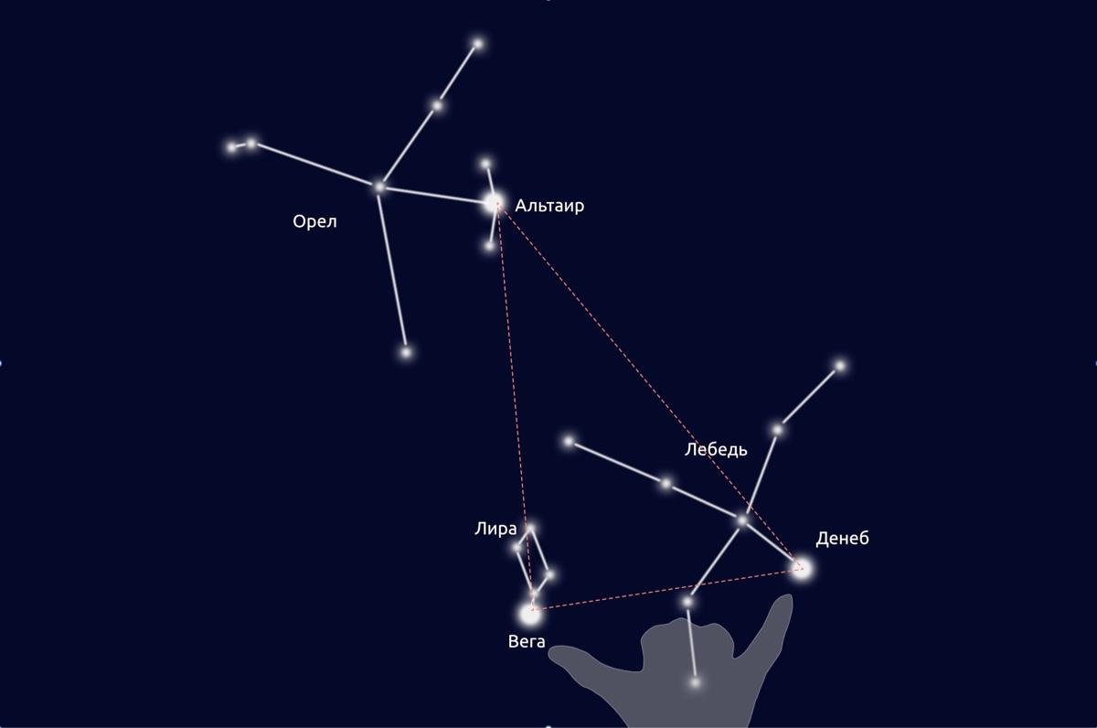 Чем важно? — Часть “летнего треугольника” — трех самых ярких звезд северного полушария (см ниже). А еще он "пролетает" прямо по Млечному Пути. Это идеальный выбор для старта летних наблюдний: он отлично виден и его просто выучить, а от него — искать другие созвездия и объекты.