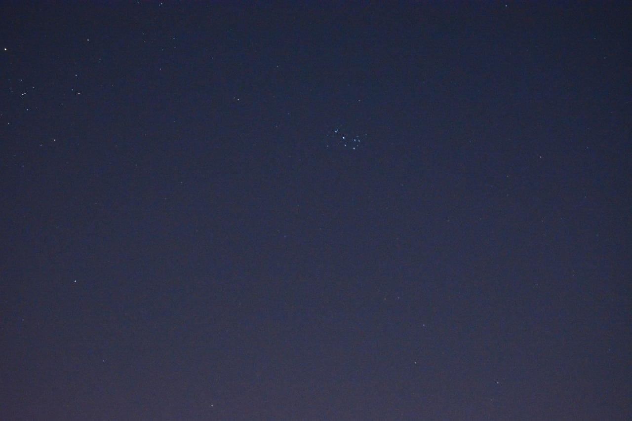 Их мы уже видели. Это звездное скопление в созвездии Тельца. Удивительно, что чаще всего звезды, которые на небе кажутся близкими друг к другу, на самом деле находятся на огромных расстояниях друг от друга, и то что мы видим — просто проекция. Но вот Плеяды на самом деле находятся радом друг с другом. На расстоянии в ~450 световых лет от нас. Размер кластера — около 8 световых лет, и всего в нем около 1000 звезд (14 из них мы видим невооруженным взглядом). По моему, очень круто! И очень просто найти на небе.