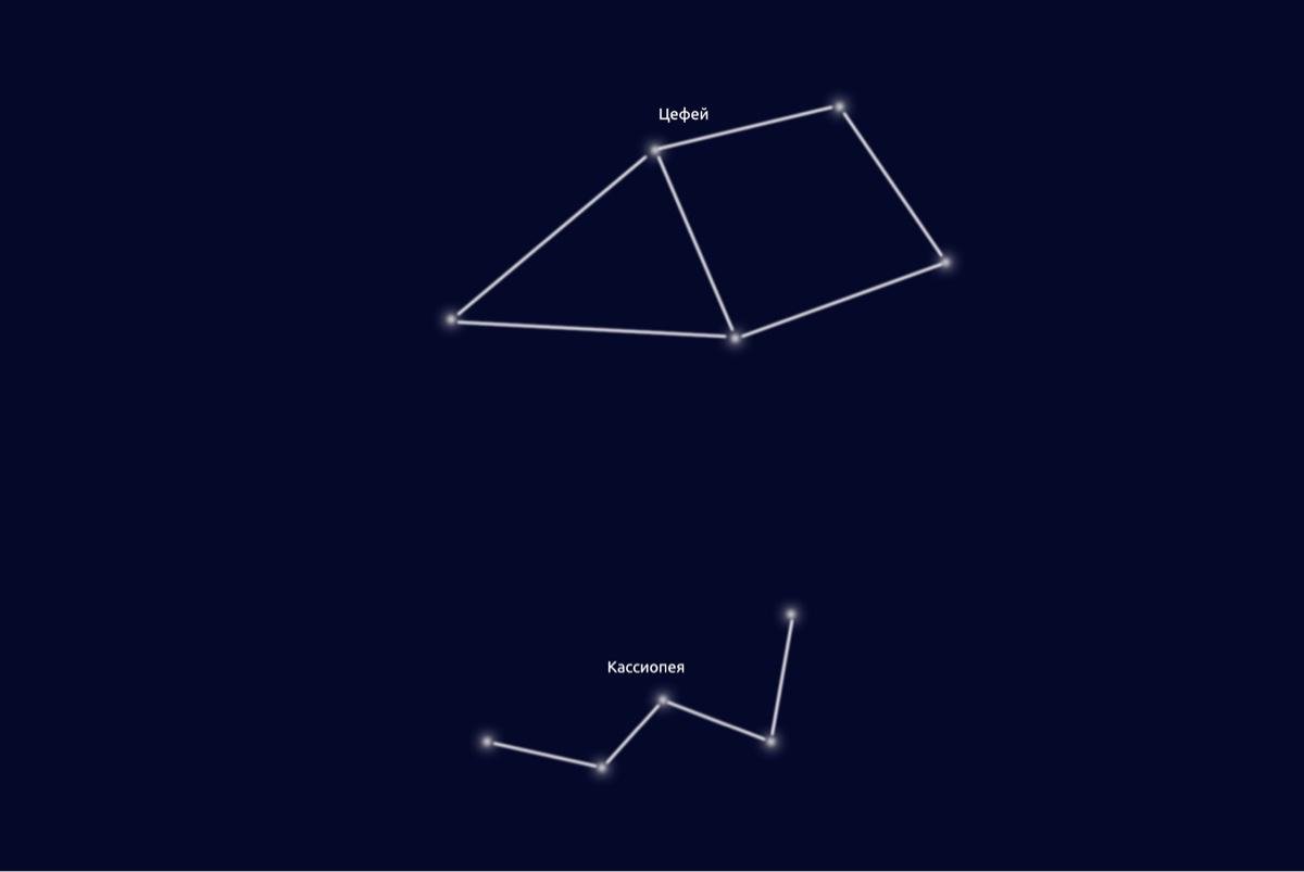 Тут очень просто: ищем “домик” прямо над Кассиопеей. Особо ничего примечательного в созвездии нет (по крайней мере для невооруженного взгляда), но клевый домик же!