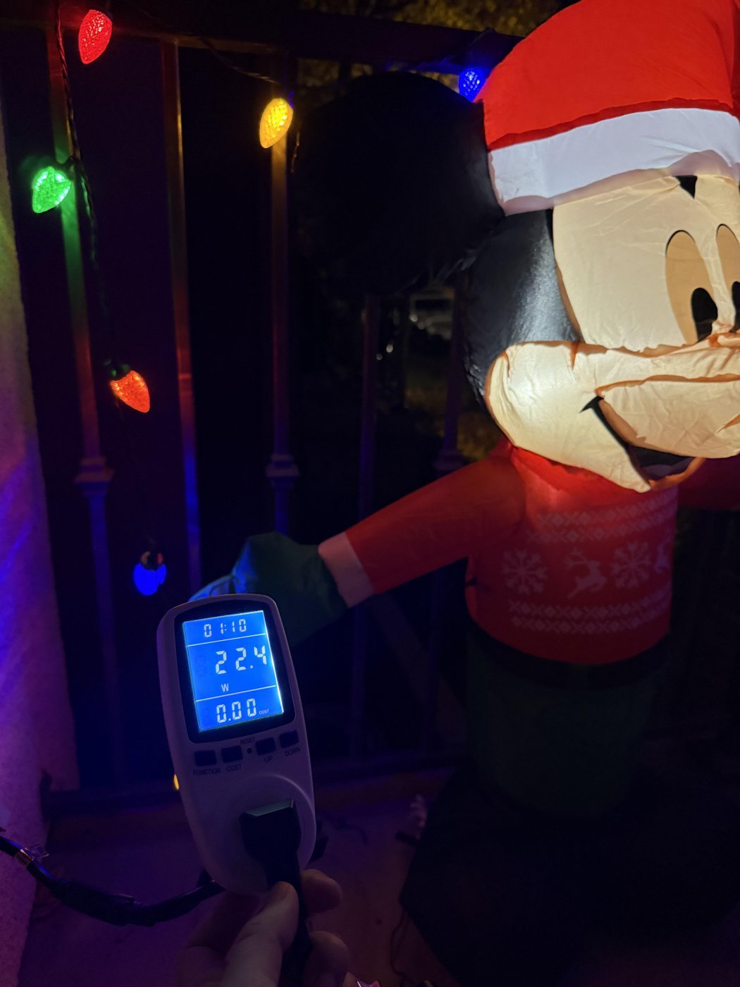 А вот чем хочу поделиться: это фоткой, как подаренный измеритель параметров электрической сети проверил мою домашнюю иллюминацию. Дочка впервые попросила украсить крыльцо после переезда в новый дом и я как скучный взрослый хотел знать, сколько потребляет насос для Микки, гирлянда и миниатюрный домик от Home Depot. Так вот: самую малость, 22Вт, могу себе позволить 😎