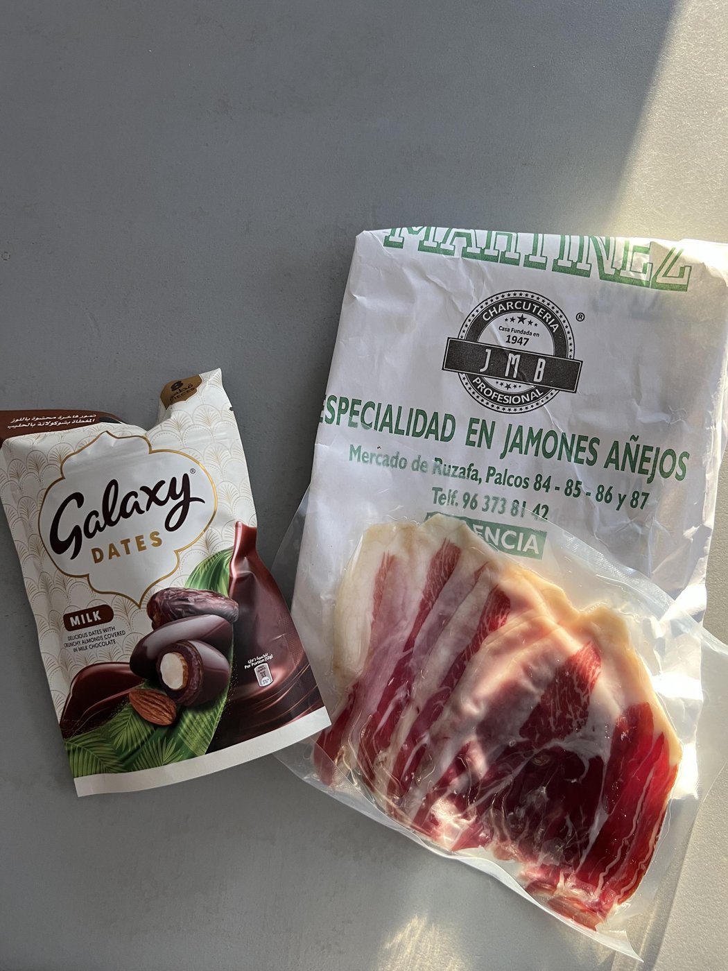 Получил, мой Санта летел с Валенсии, и отправил очень милую записку вместе с милым хамоном и конфетами и очень хорошей открыткой.