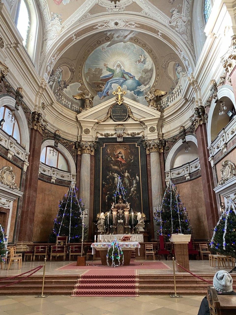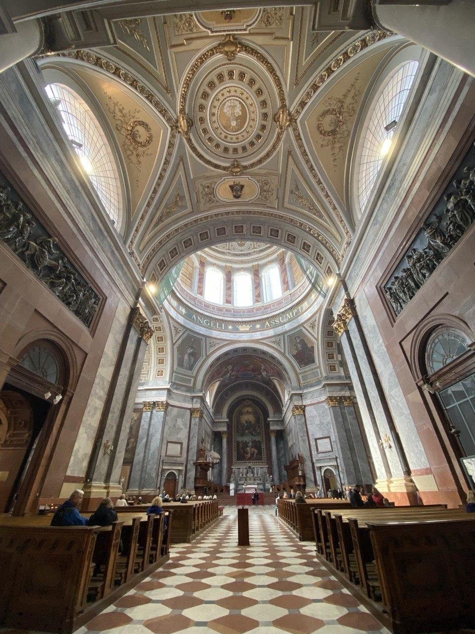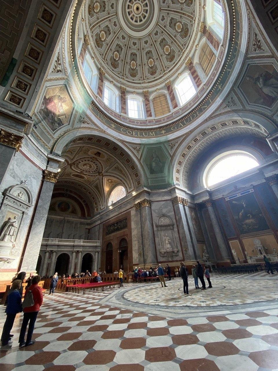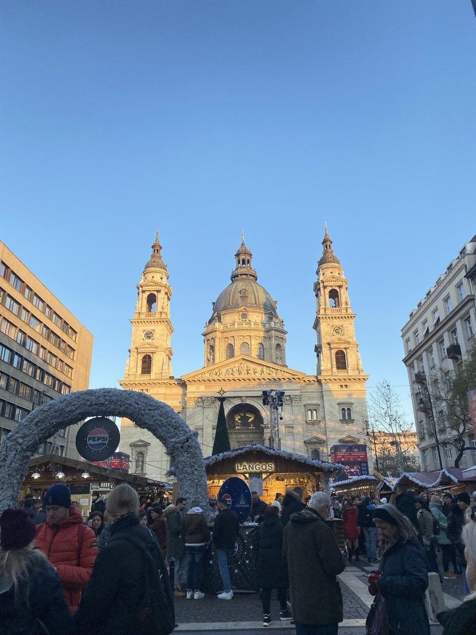 ⛪ Вотивную церковь (Dóm) на Dóm tér — огромный кафедральный собор с большой площадью и историческими постройками вокруг.