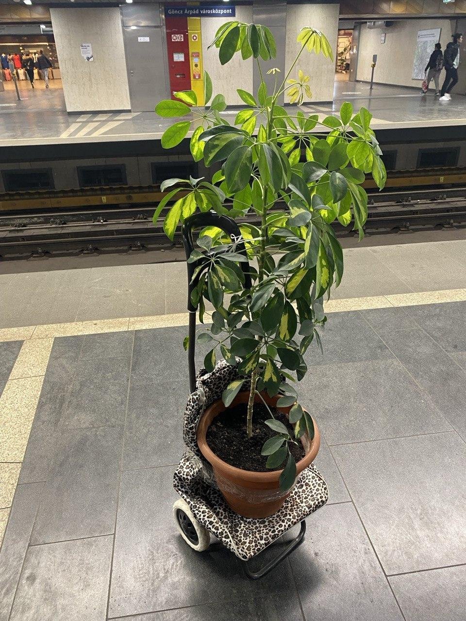 Вернусь немного к обустройству квартиры. Мне нужны были комнатные растения. Я считаю, что уют в квартире создаётся с помощью текстиля, картин и комнатных цветов. Покрывало на диван и спатифиллум я купила в Икее (картины, а точнее паззлы, мне в декабре привезёт Саша), а ещё хотелось цветок побольше. Тратить много денег на цветы не хотелось, потому что я знала, что в итоге просто подарю их кому-нибудь при отъезде (так и случилось). Поэтому я стала шерстить местное Авито – Jofogas. Смотрела ближайшие районы (нюанс Jófogás в том, что он указывает район, а не конкретную улицу, что в итоге сыграло со мной хорошую шутку) и нашла метровую шеффлеру за нормальную стоимость. И поехала за ней: пешком 10 минут до метро, 20 минут на метро и 20 — на автобусе.