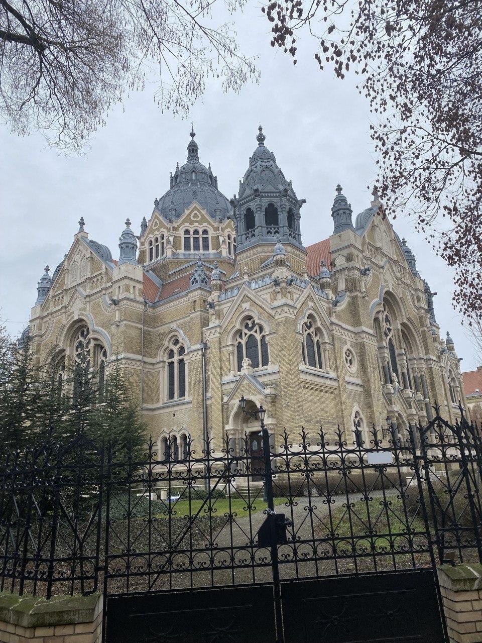 🕍 Новую синагогу Сегеда (только снаружи) — это одна из крупнейших и красивейших синагог в Европе, выполненная в стиле, сочетающем ар‑нуво и историзм. К сожалению, она была закрыта в дни нашего визита в Сегед.