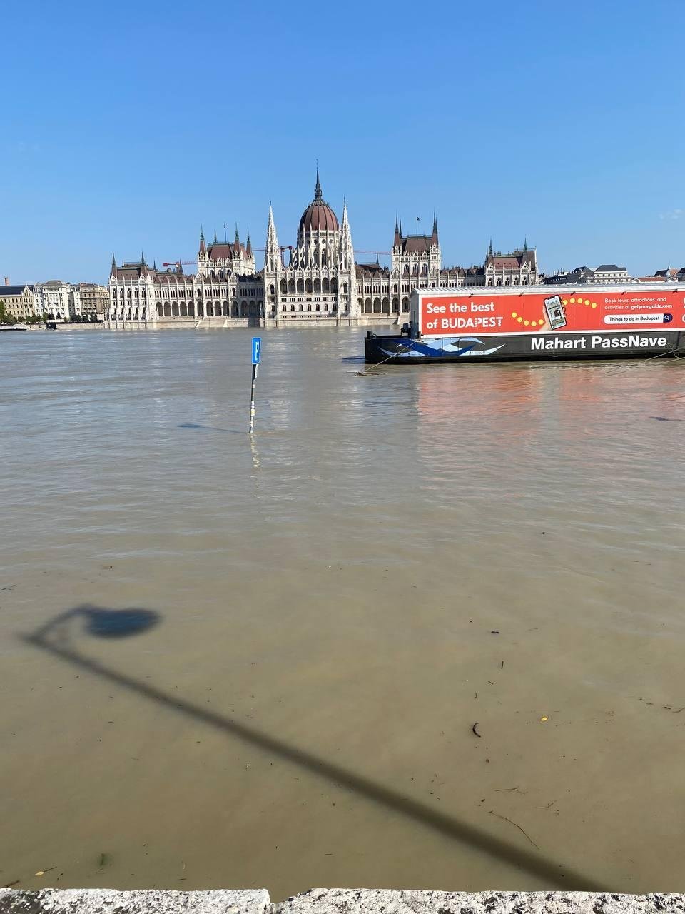 А потом в Венгрии было наводнение. Последнее большое наводнение было в 2013. Вот фото от 19 сентября 2024 года с уровнем наводнения 2013 года в Будапеште.