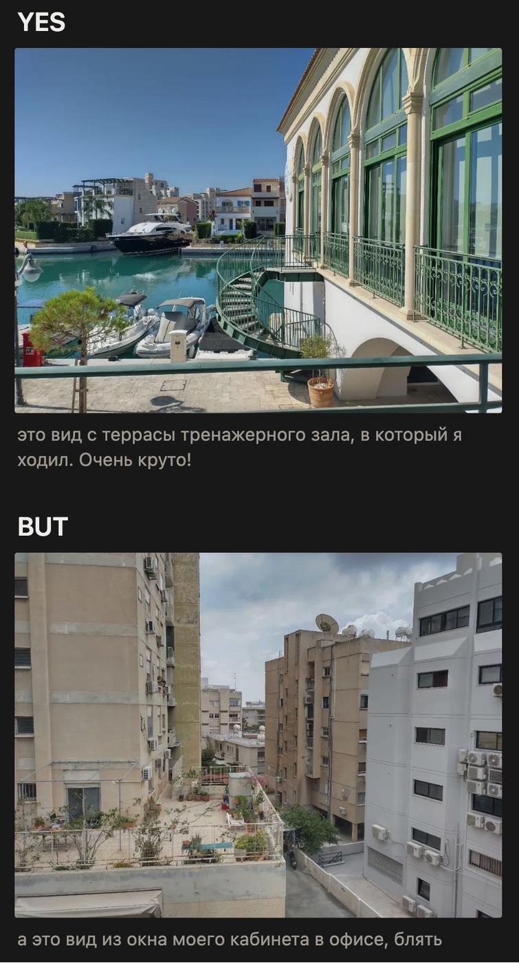 2 года назад начал писать пост про Кипр, не буду уже его постить, просто сейчас открыл и засмеялся. Мне кажется, эта картинка должна быть под каждым рекламным видосом, где дроны Молос с воздуха снимают