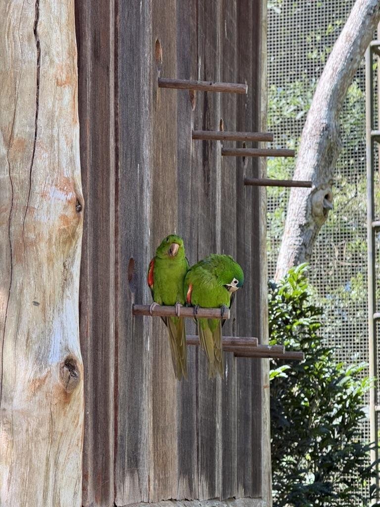 А вот клетка с зелеными попугаями! Или как гласит табличка: