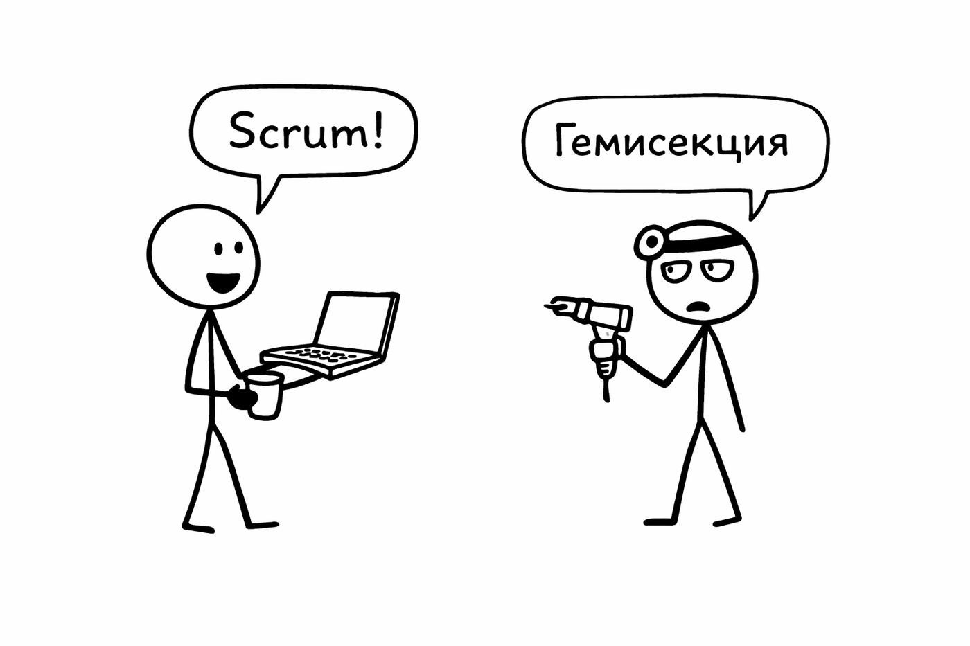 Да, я знаю, что Scrum в стоматологии звучит немного дико. Сразу представляется, как хирург посреди операции такой: «Сорян, у меня дейли, пациент, повиси пока на холде».