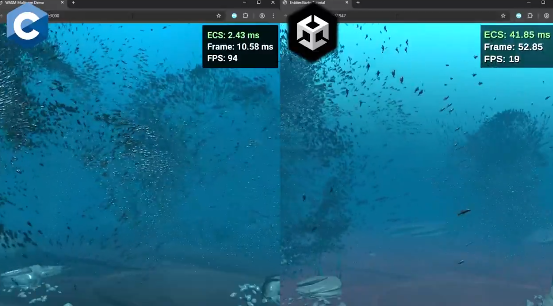 Габриэль Декичи провёл эксперимент со 100к боидами, который оказался в 17 раз быстрее, чем в Unity.