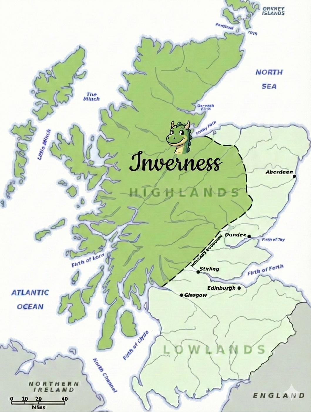 Инвернесс – город на севере Шотландии. Географически он находится примерно по центру северной части страны и часто считается условной границей между "обычной" Шотландией и Highlands, диким северным регионом. Город стоит на реке Несс, в месте, где она вытекает из Лох-Несса и уходит в сторону Северного моря. Поэтому он так и называется – Инвернесс дословно переводится как "Устье реки Несс" от гэльского Inbhir Nis.