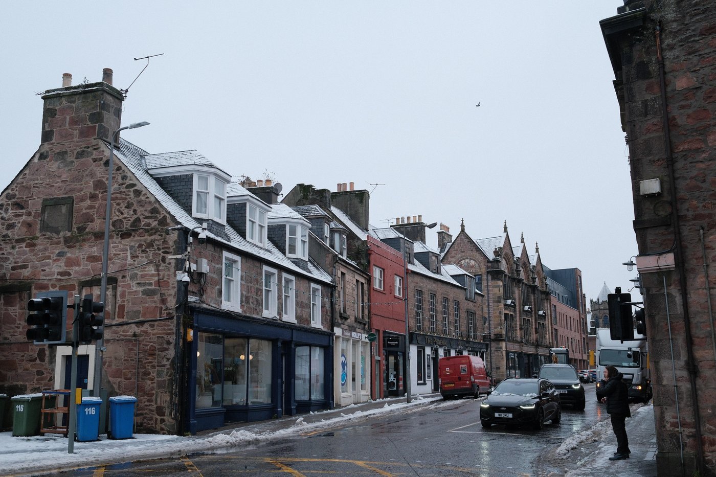 Так вышло, что выехали мы в день снежного коллапса: примерно на трети пути нас накрыло снегом, а дороги еще не начали чистить и посыпать. Зимняя резина в Британии не в почете, как и в большей части Европы. Было красиво, но страшно. В машине, помимо нас с мужем, были пес и четырехмесячный ребенок. Планы заезжать куда-либо по пути сломались – мы просто ехали напрямую до Инвернесса.