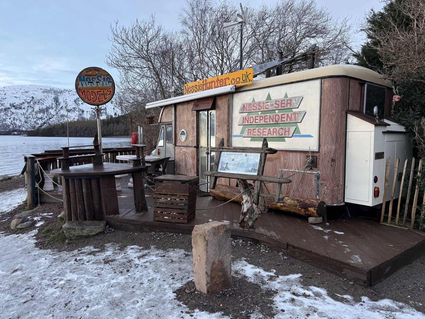 На пляже Dores Beach живет человек, который посвятил большую часть своей жизни поиску легендарного чудовища. Он приехал из Англии, продал дом и купил старый фургон (раньше он был передвижной), который сейчас служит ему стационарным домом. Нессихантер живет так уже больше 30 лет, следит за поверхностью озера, наблюдает за волнами, встречает людей со всего мира и обсуждает с ними свои наблюдения. Он считается одним из самых известных охотников за Несси и даже установил рекорд по самой длительной постоянной слежке.