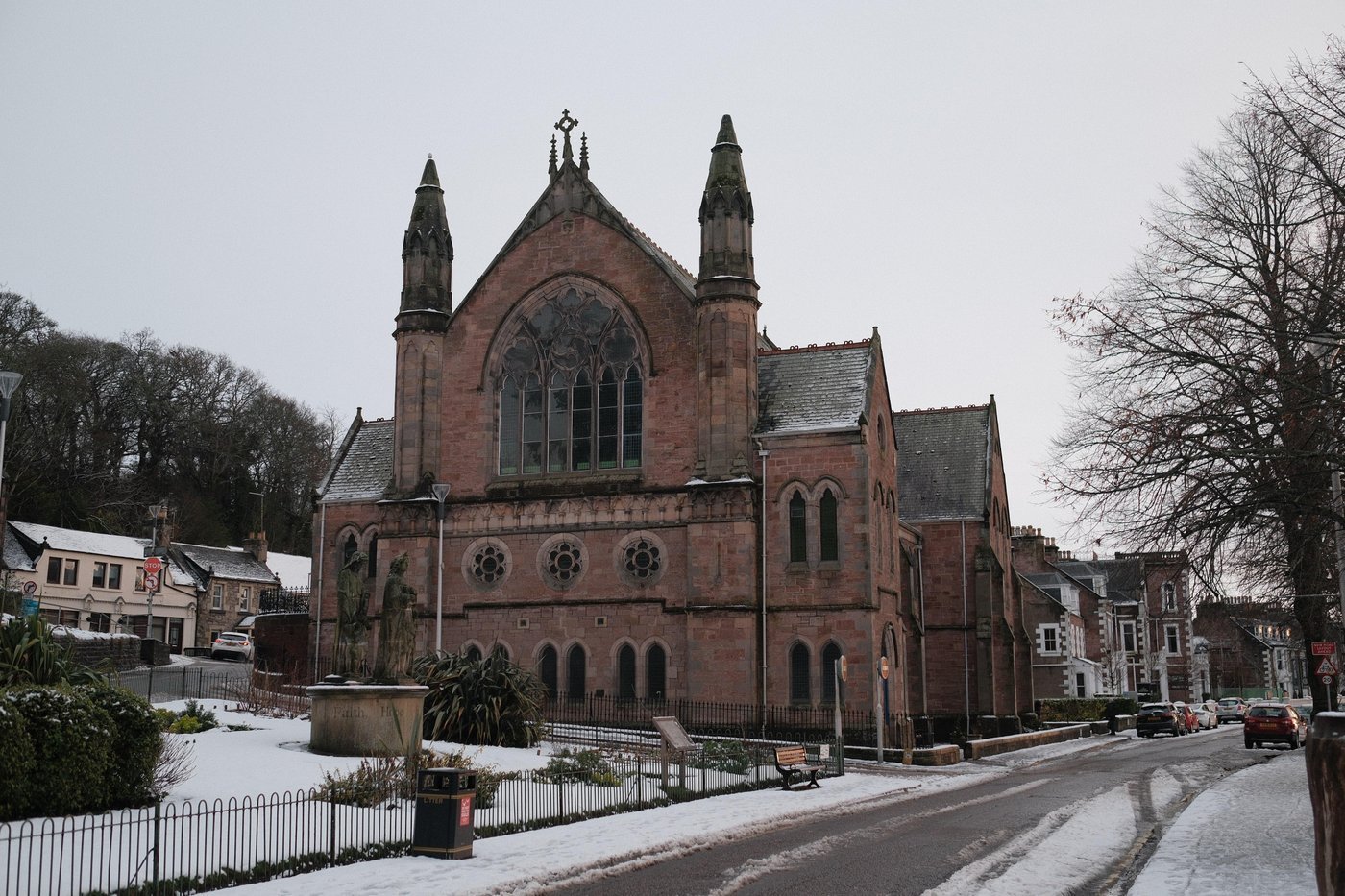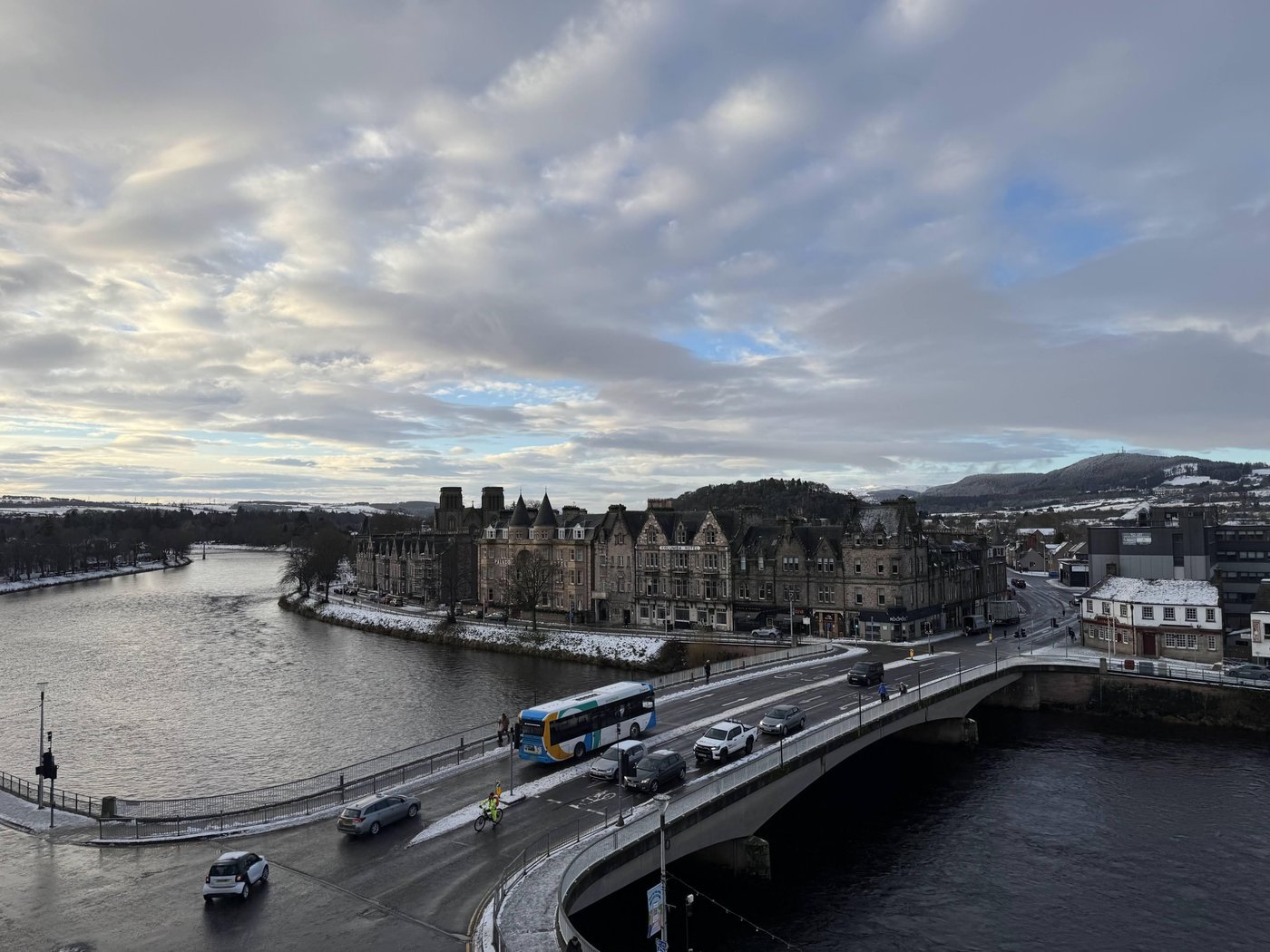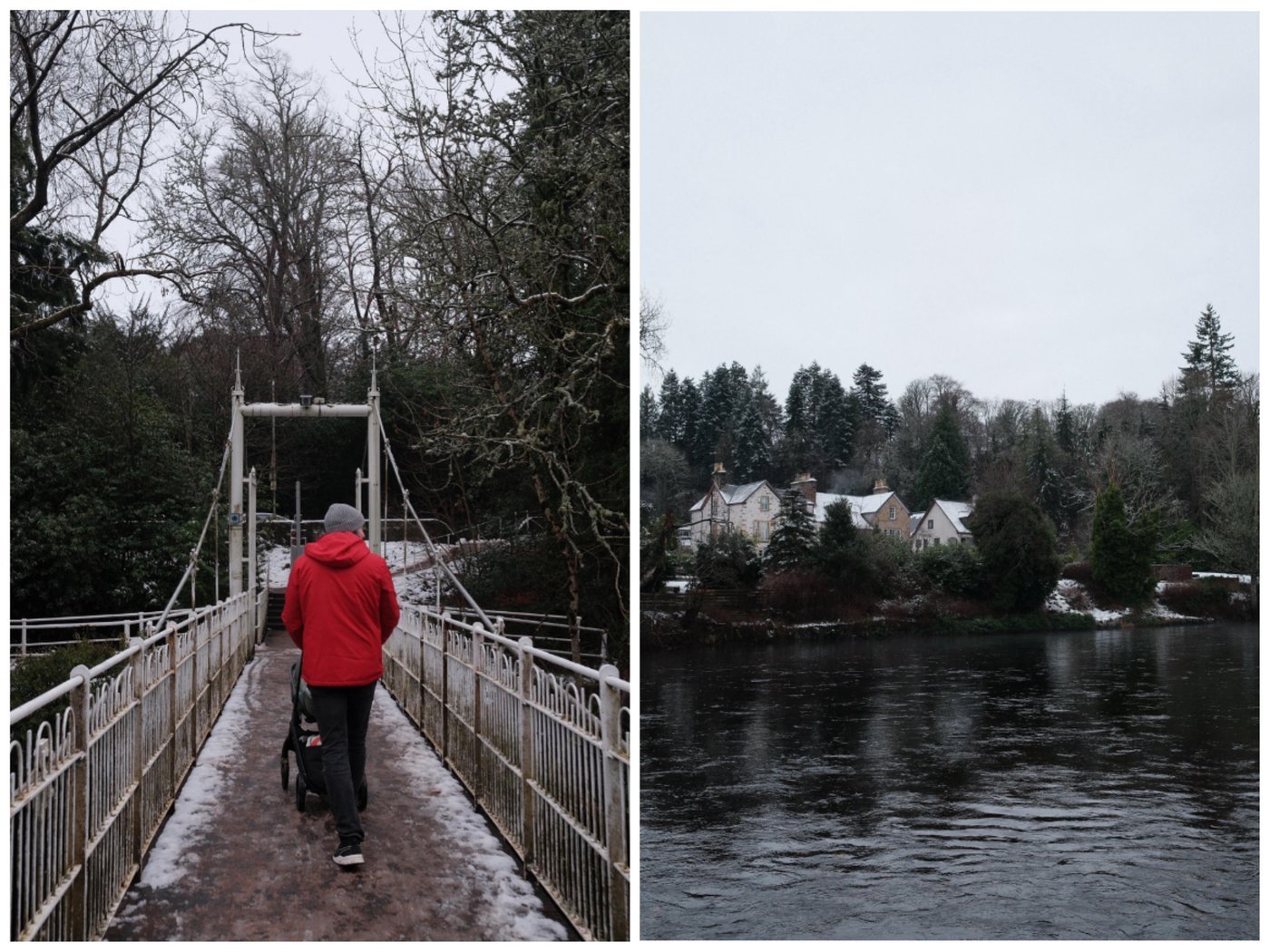 Дальше отправляемся по Ness Walk в прогулочный маршрут по городу и по островам Ness Islands. Легкие круговые маршруты разной длины вдоль реки. Именно эта прогулка скрасила наше пребывание в городе – с коляской и в слякоть было непросто, но снег и ручьи добавляли атмосферности.