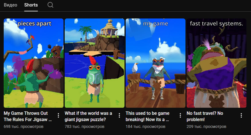 В последние месяцы больше почитываю разработческие сабредиты, и довольно часто люди пишут о том, как "без вложений в рекламу" получают приемлемое число вишей в Стиме с помощью шортсов на Ютубе и/или в ТикТоке.