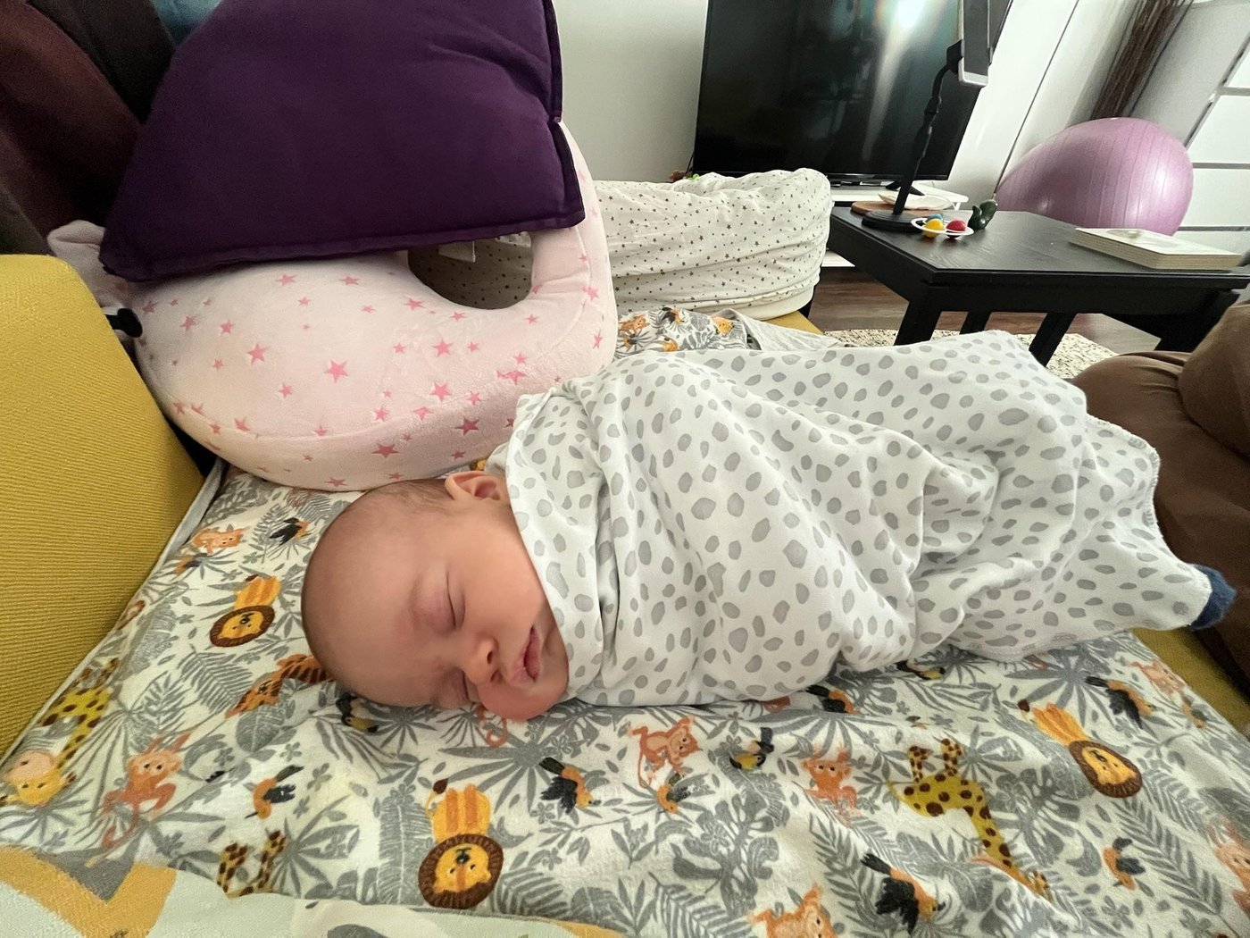 Первые недели я страдала, потому что не получалось кормить лежа, новорожденный ребенок такой маленький, что просто кормить его, держа на коленях - очень не удобно. Я взяла консультацию по ГВ и прекрасная акушерка Светлана Лузихина из ЦТА научила меня как кормить и как на пеленке перетягивать ребенка обратно в кроватку, не разбудив. Это было вау!