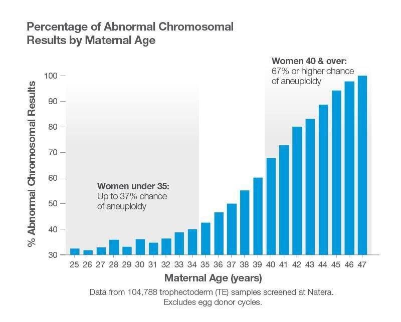 Статистика, сколько эмбрионов с хромосомными поломками получается в зависимости от возраста женщины