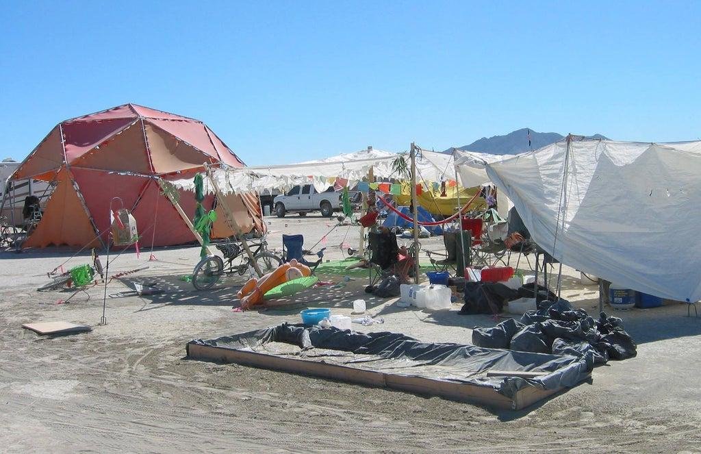 AfrikaBurn требует испарять всю серую воду на месте или вывозить её. Слить на землю - нельзя. Нет.