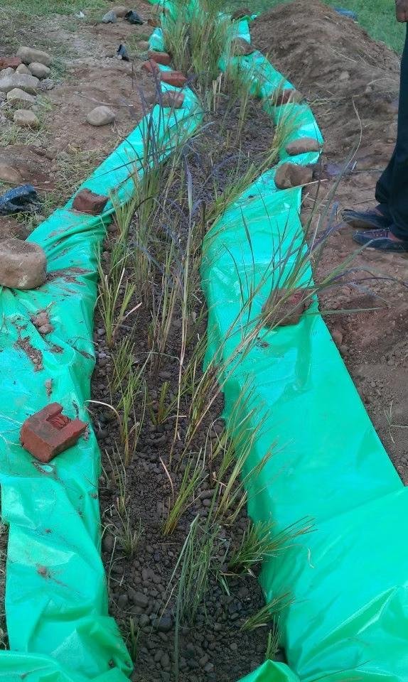 Биофильтр из сена / соломы тюков. Тюк соломы поливаешь серой водой - вода просачивается через органику и испаряется с поверхности. Работает! Медленно. Для маленьких кемпов может и ок. Нам не хватит ёмкости, плюс тюки надо вывозить. Сорян, зелёные.