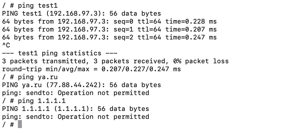 - Контейнер не должен ходить наружу никуда, кроме example.com