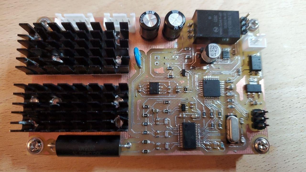 Забегая вперёд, потом я сделал нормальную плату управления двигателем, с обратной связью по току и напряжению (её фотка в самом начале поста).