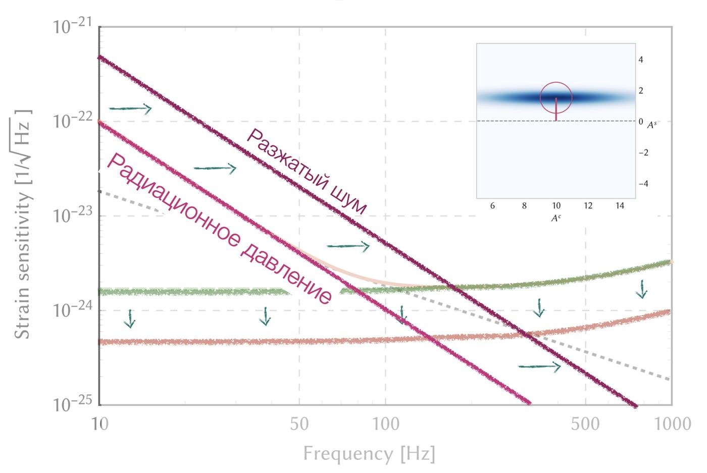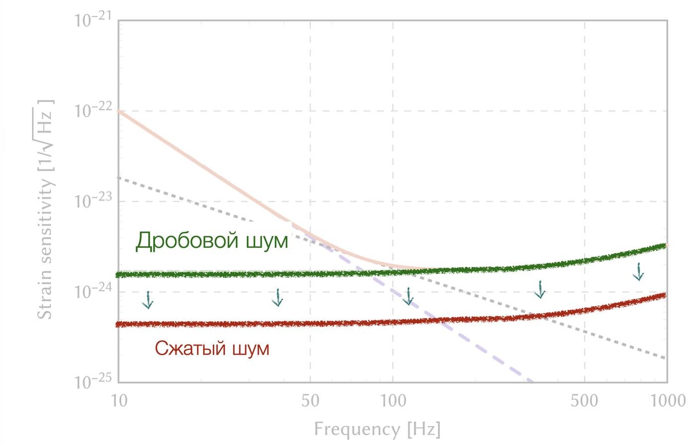 Получается как-то так: мы, конечно, в одном месте убавили, но пришлось добавить в другом месте. И это одна из больших проблем в детекторах гравитационных волн: если с этим ничего не сделать, мы не сможем использовать сжатие — оно окажется бесполезным.