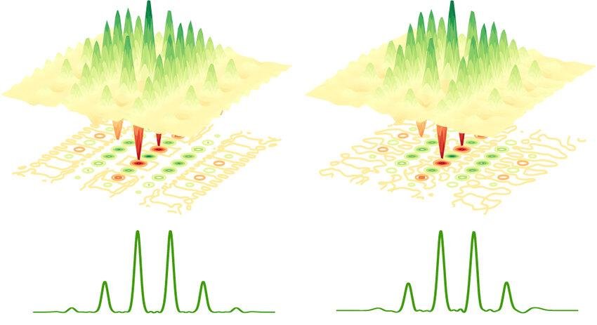 Но стоит нам добавить всего несколько квантово-запутанных фотонов — и реально несколько, порядка тысячи в секунду, по сравнению с 1000000000000000000 фотонами в плечах интерферометра — как картинка разительно меняется. Мы можем увидеть сигнал! Что за квантовая магия тут происходит?!