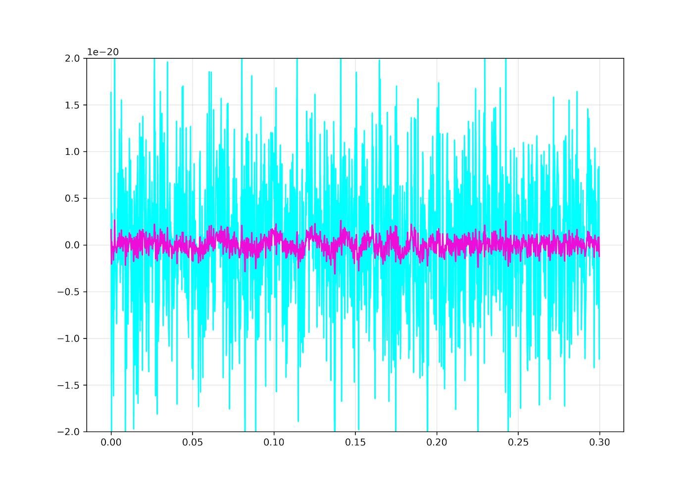 Это огромные интерферометры, где лазерный луч измеряет изменения в длине плеча в 4км — на уровне 1/1000 размера протона. Мы потратили миллиарды, чтобы построить эти детекторы. Так вот, волна прибегает на них, но что мы видим вместо сигнала? НИ ЧЕ ГО. Ну как ничего, шум мы видим. Фотодиод, который должен наблюдать гравитационно-волновой сигнал, видит только шум: сигнал слишком далеко шел и оказался слишком слабым…