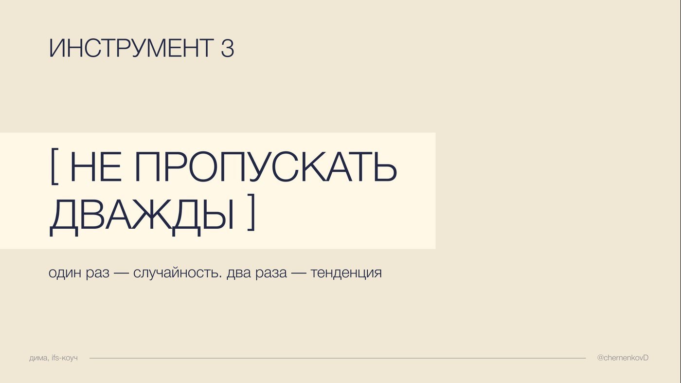 По сути, это фреймворк для направления внимания, когда что-то пошло не так, как мне хочется, и я чувствую в связи с этим либо интенсивные негативные эмоции, либо нежелание туда смотреть, которое маскирует эти негативные эмоции.