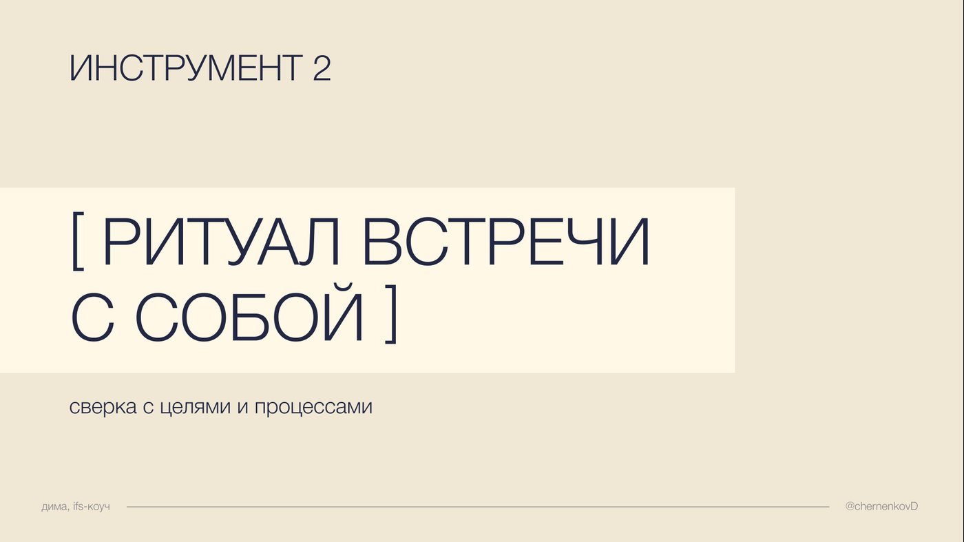 Главный совет, который я могу дать: сделать эту штуку регулярным и отдельным ритуалом. Это прям встреча. Просто встреча с собой. Возможно самая важная, которая у вас может быть. Ей нужно свое место в календаре, а еще лучше собственный определенный сетап: к примеру, я часто иду в одно и то же кафе за один и тот же столик.