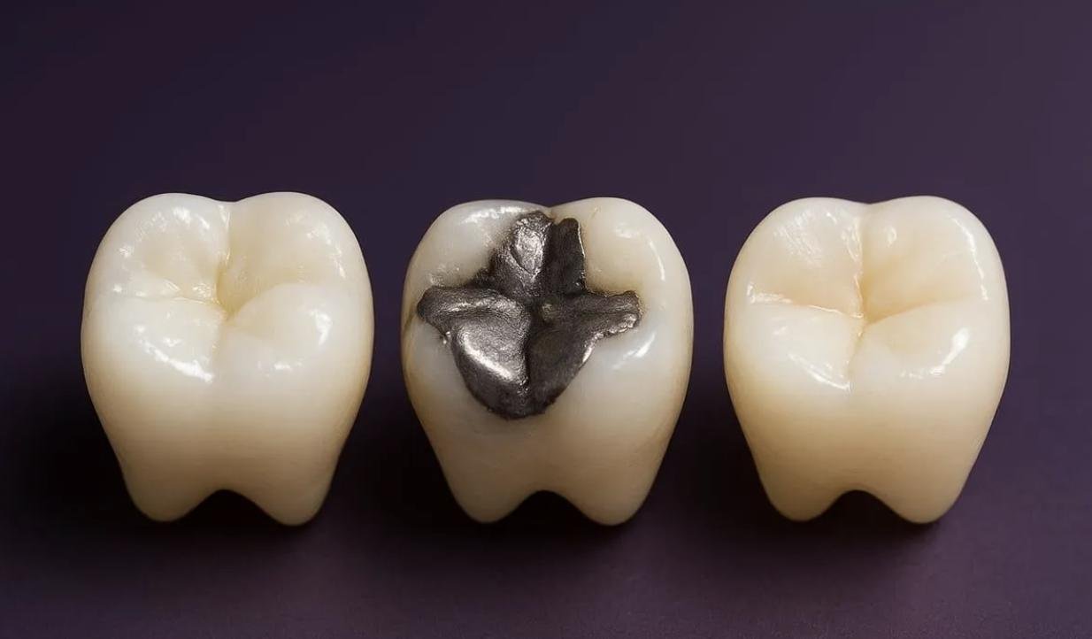 Быстрый гуглинг, пока я искала картинку, показал, что никакие это не страшилки, а очень распространённая практика, и в UK-статьях подаётся как «вы хотите белую пломбу или серебристую?».