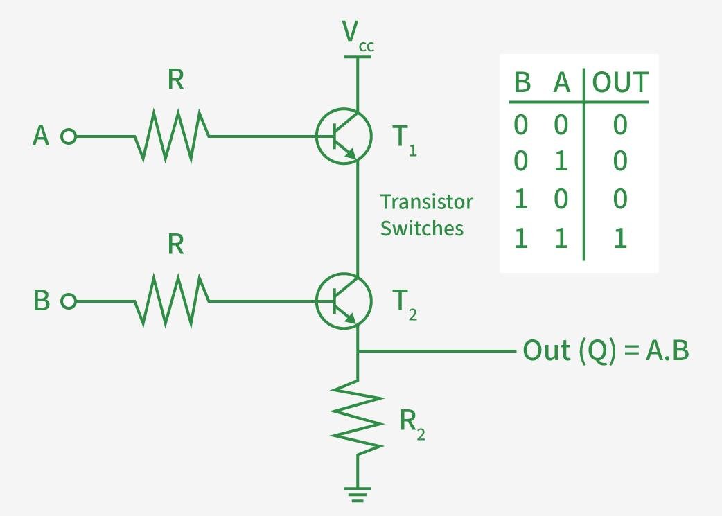 Если мы будем соединять транзисторы определенным способом мы можем получать разные логические вентили(gate) и уже из них можно собирать сложные схемы, а в итоге даже твой компуктер